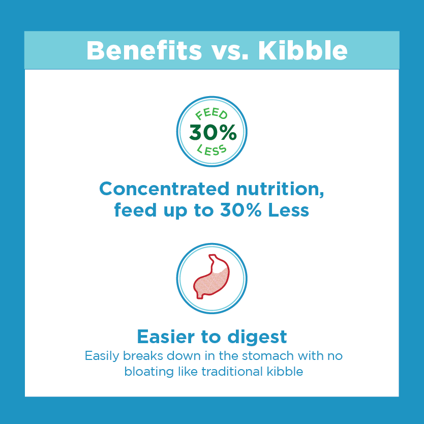 We sure think so! Kibble is highly-processed dog food, made at high heat, which degrades most nutrients. Unlike kibble, Nextrition starts breaking down immediately — without bloating inside your dog’s stomach. And because our cold-pressed dog food is made from premium ingredients and cooked gently, it retains more of the nutritional goodness and natural flavors. This leads to many benefits, like: improved digestion, boost in immunity, better nutrient absorption and, many more!
