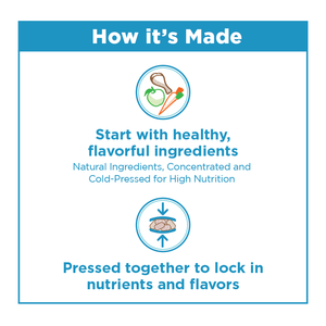 When transitioning to a new dog food, you want to do it slowly — over the period of 7-10 days to give your dog’s gut time to adjust, as it is common for them to experience some digestive discomfort during that period as they adjust to the new food. To help your dog get started with our cold-pressed food, you will get a daily feeding guide with your first order.